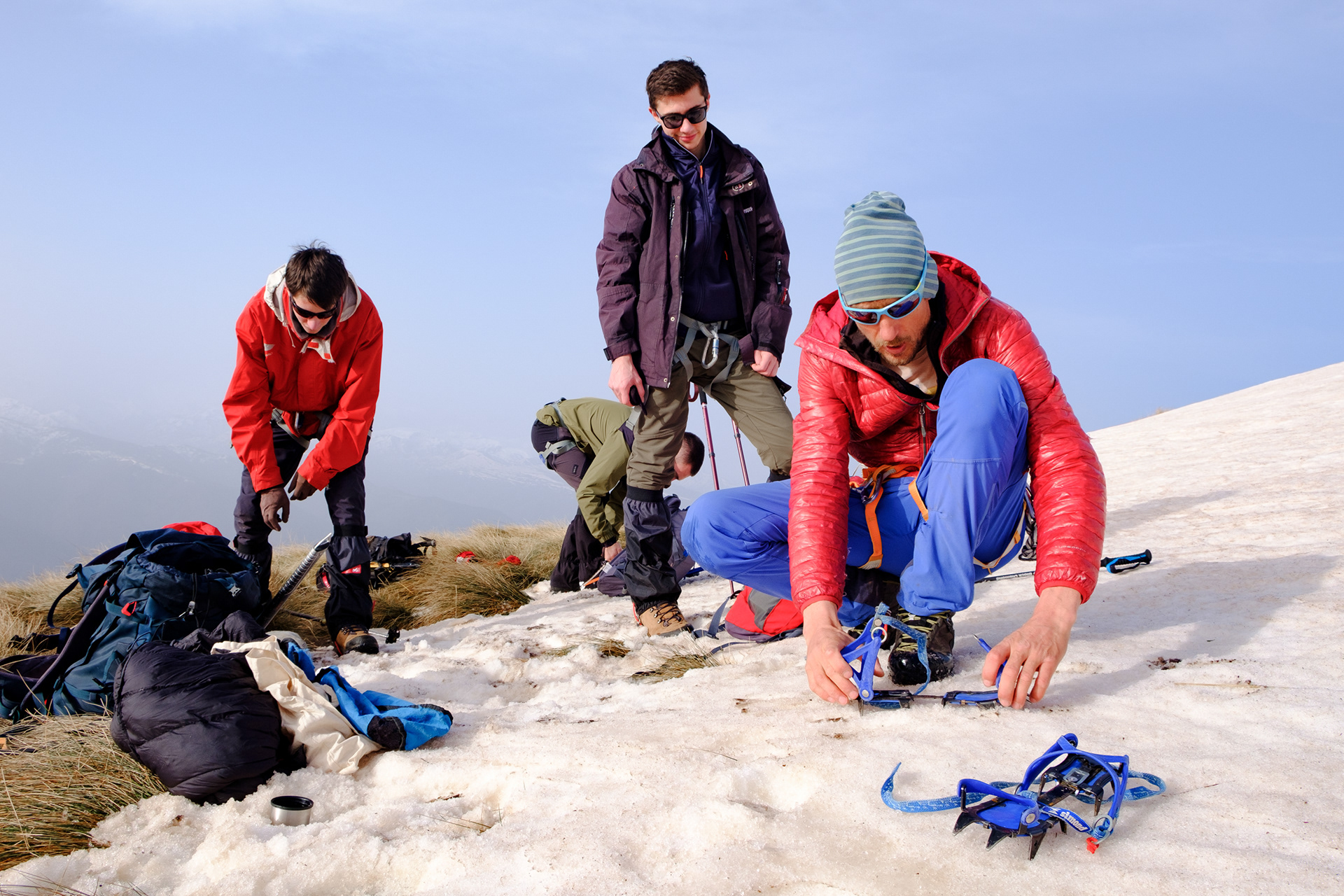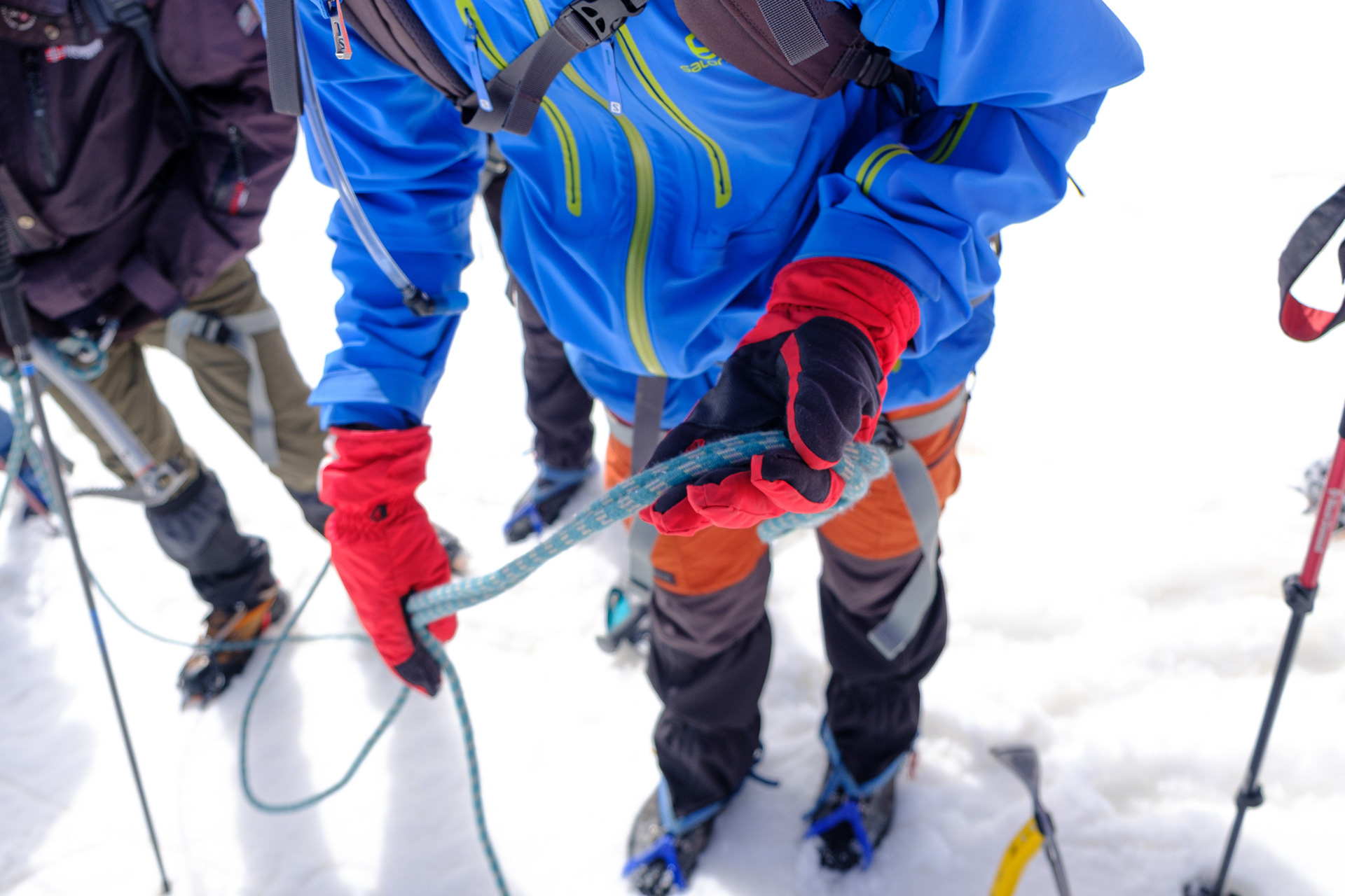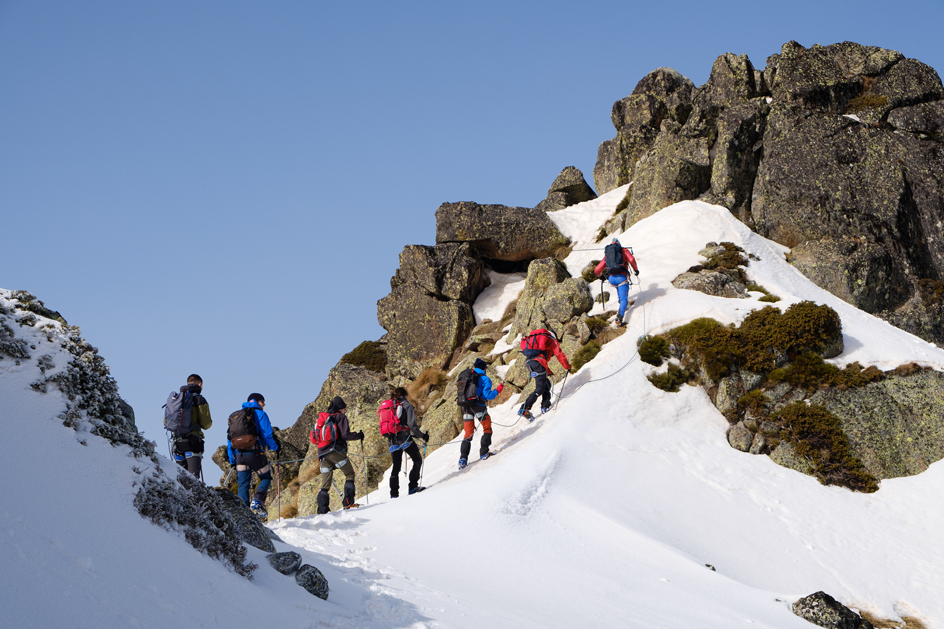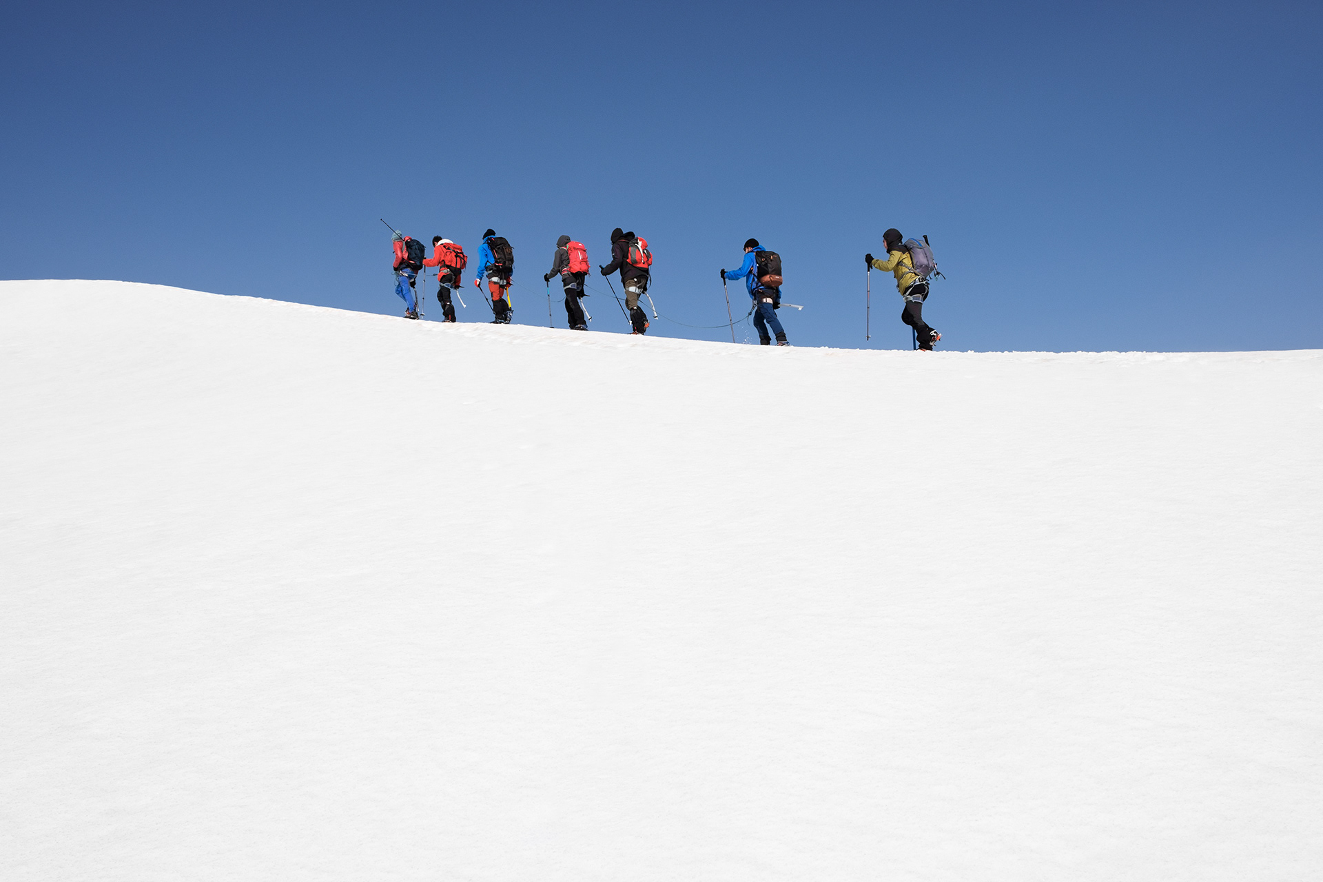 Pauline, Rémi, Clémence, Etienne, Paul, Clément et Jules ont décidé de s'initier à l'alpinisme pour aller un peu plus loin dans leur pratique de la montagne. Accompagnés par Simon, leur guide, ils apprennent les techniques de base de l'alpinisme. Encordement, crampons, piolet...