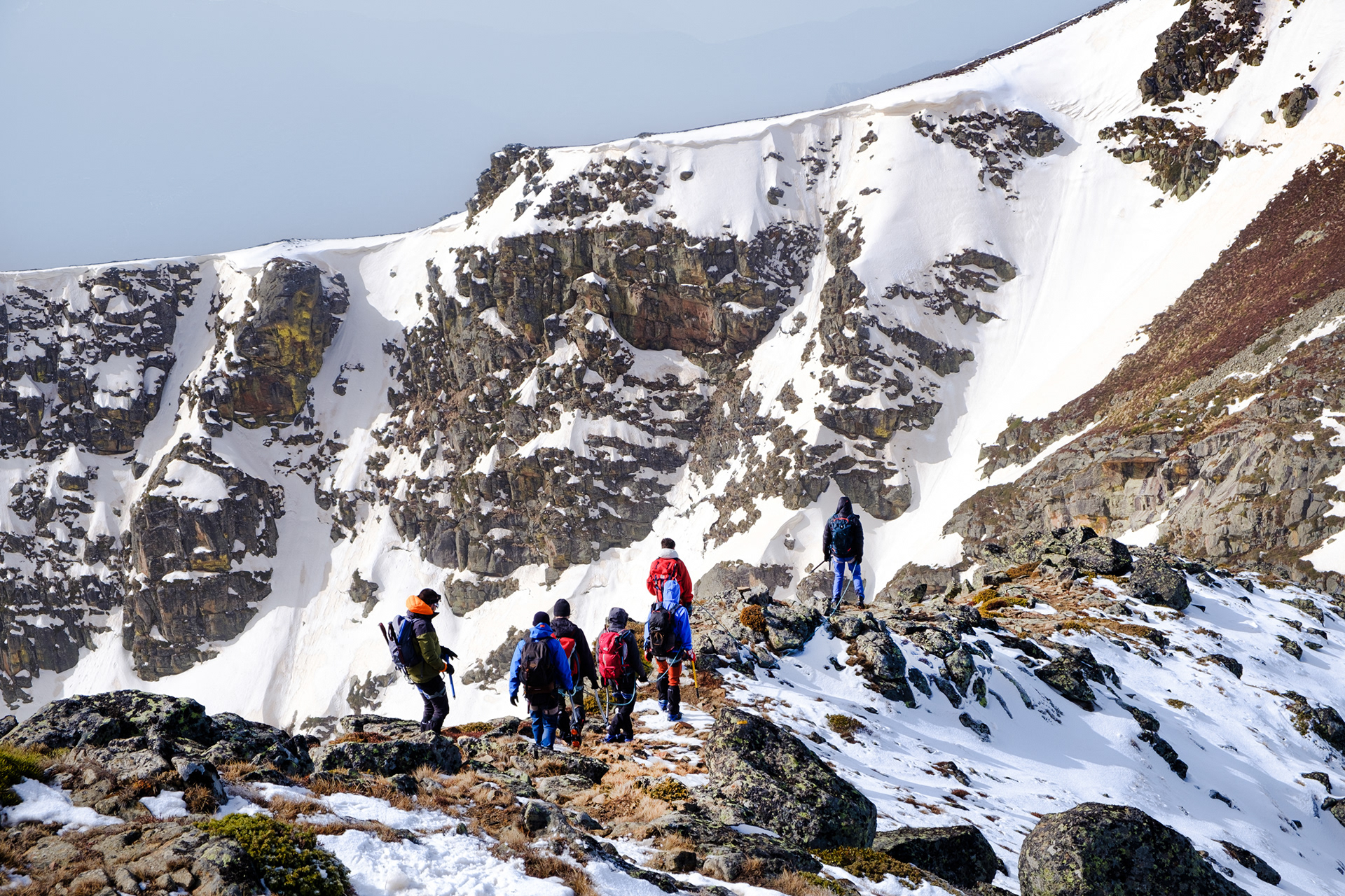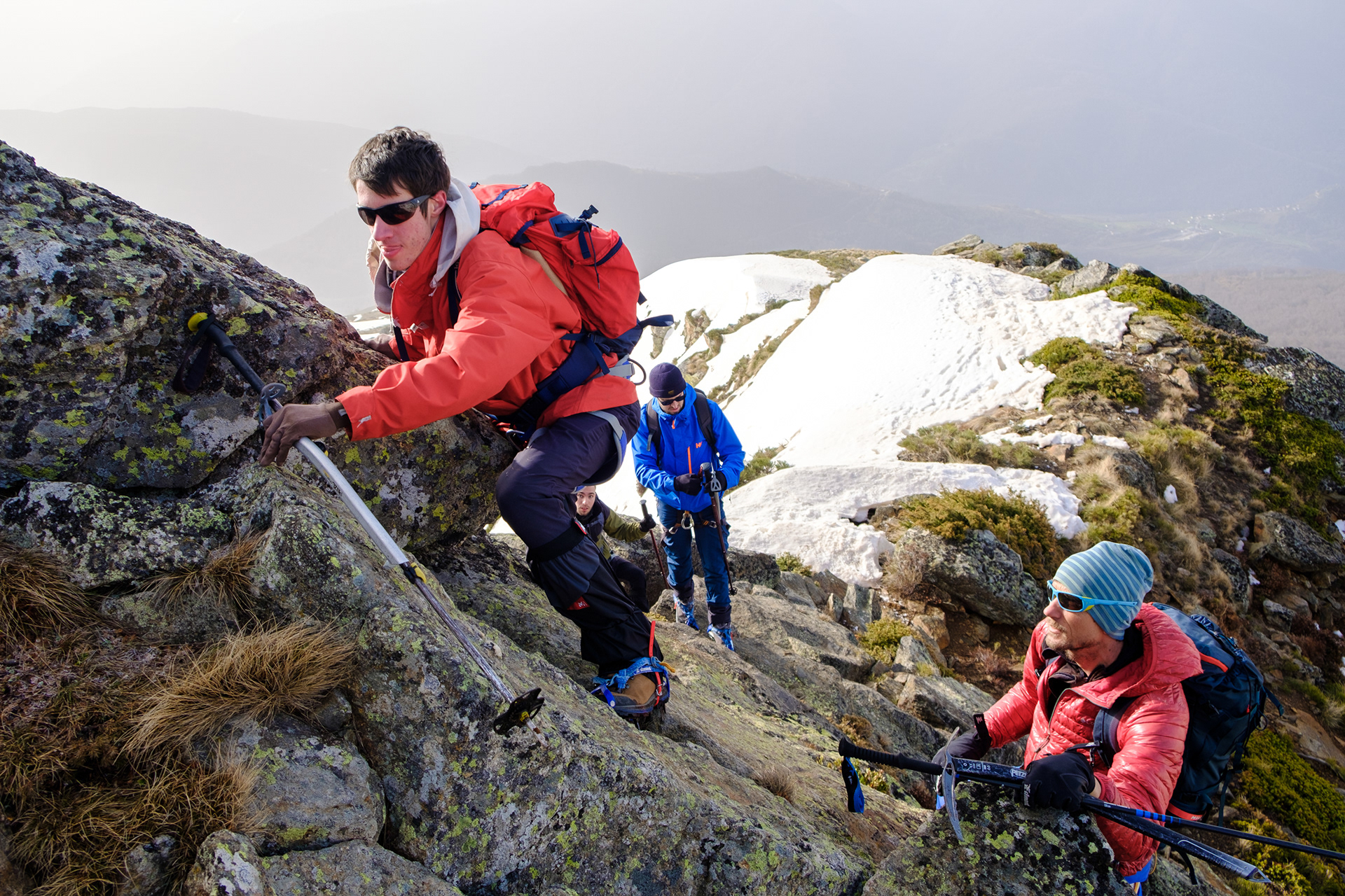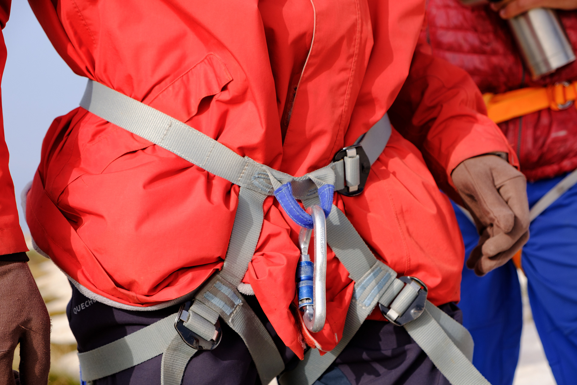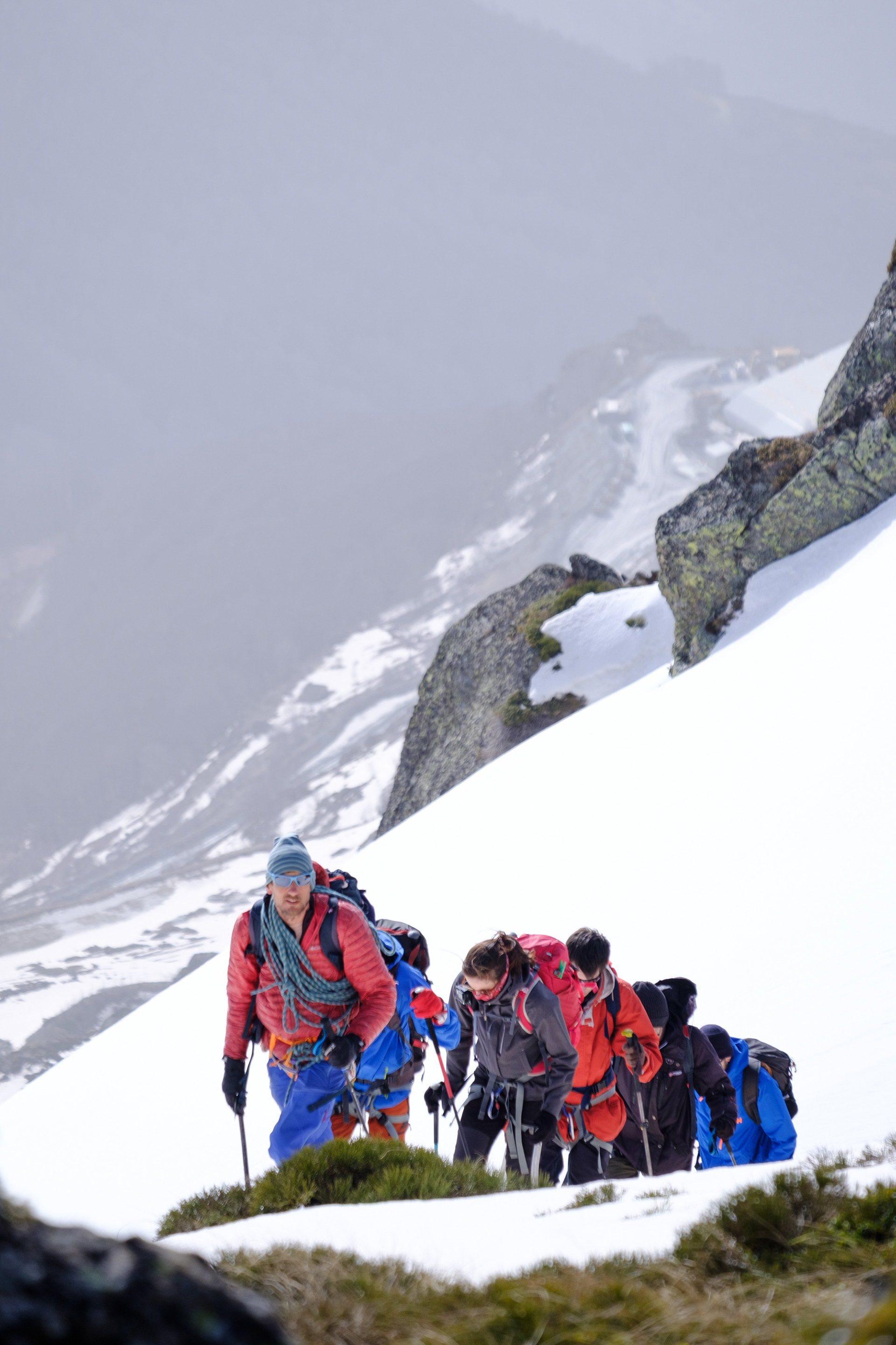 Pauline, Rémi, Clémence, Etienne, Paul, Clément et Jules ont décidé de s'initier à l'alpinisme pour aller un peu plus loin dans leur pratique de la montagne. Accompagnés par Simon, leur guide, ils apprennent les techniques de base de l'alpinisme. Encordement, crampons, piolet...